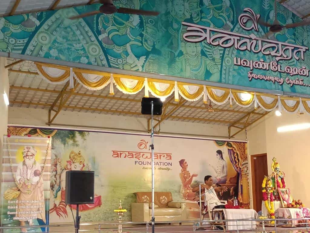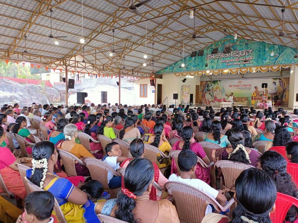 Sri Murali ji discoursed on Rama Nama Mahimai at the Bhakthi Tiruvizha organised by Anaswara Foundation on December 25th at Marthandam in Kanyakumari District. More than 400 devotees participated in the satsang.