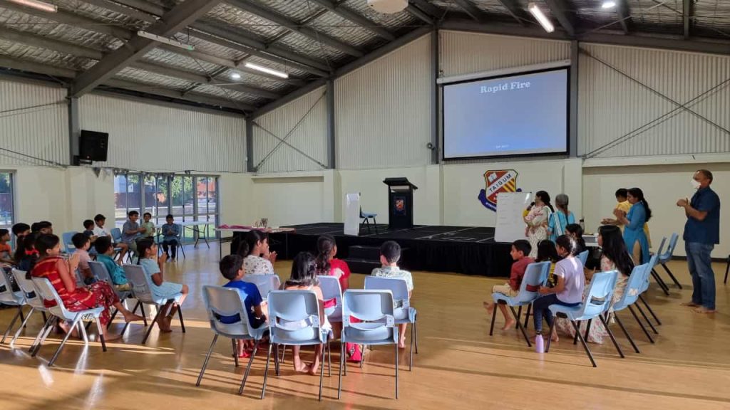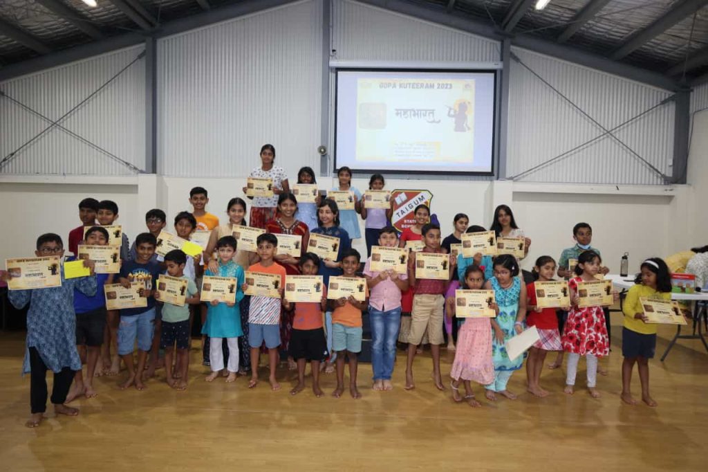 The 6th Annual Day of Gopa Kuteeram Brisbane was held on Nov 26 at Taigum State School Hall. A Puranava quiz was conducted. Five teams of six children each participated.