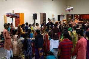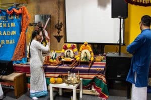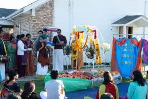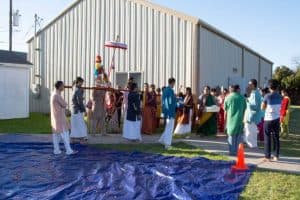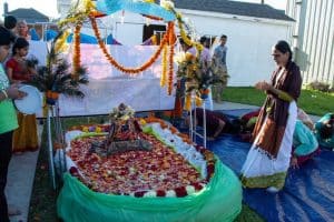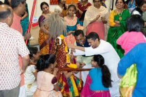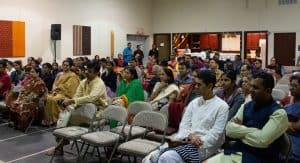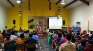 Day 2 started off with Radha Kalyanam, divine wedding in grandeur by Sri Poornima ji amidst the rendition of Ashtapathis and madhura gitams. ‘Krishna Premamayi Radha’ – A musical ensemble was presented enthusiastically by children of GOD’s Krishna Cottage bhajan program from various regions as an offering to the Lordship. Young singers and accomplished artists and dancers from Minneapolis and Houston joined singers and dancers from Dallas to present this lovely program. This was followed by Sri Poornima ji’s katha, a continuation of Day 1. After the katha was Vaarkari – Enacted the procession of Sant Tukaram & Gnaneshwar Maharaj in grandeur with abhang mela to Pandari lead by Sri Poorninma ji. The day concluded with Deepotsavam – ‘Enjoying the darshan of divine couple amidst the lamps light around the altar’. It was indeed a treat for our eye, amongst rendition of madhura gitams by devotees and kids lead by Sri Poornima ji.