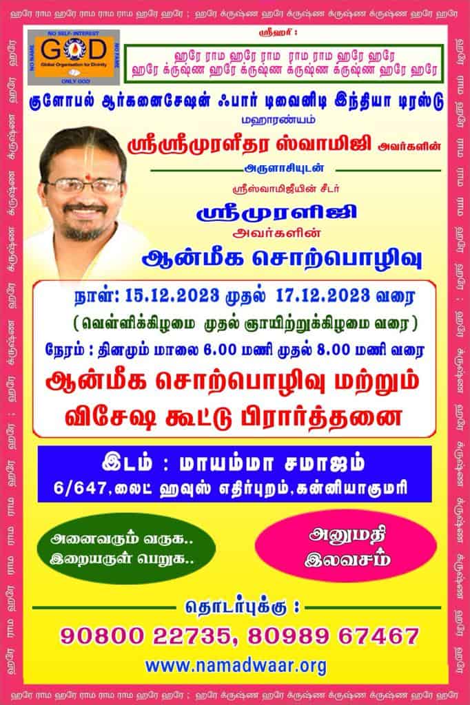 Radhe Radhe. Pranams and Prostrations to Guruji Maharaj’s Holy Feet. That this High-voltage Satsang by Sri Muraliji under the Breathtaking Guidance of Guruji Maharaj, is going to sway the masses and orient their minds to the spectrum of Divinity, is a certainty! Salutations to our Venerable Guruji Maharaj for ceaselessly providing the Spiritual Canopy for the Devotees who scamper for shelter!