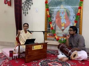 The topic for the first day’s Katha was “Nama parathey sadhana nahi”. This discourse was held at Jalaram Sai Baba Mandir in Houston and was hosted by the Gajanan Maharaj America Devotees Parivar. Here Sri Poornimaji spoke about the greatness of the Divine Name through the stories of various Panduranga devotees, especially Sant Janabai and Sant Jnaneshwar.
