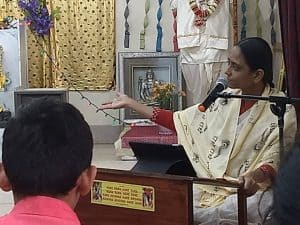 On the third and final day of Katha, which was held at the residence of Smt. Lekshmi and Sri Jeevan Nair, Sri Poornimaji spoke on “Guru ha premache agar”, i.e. Guru, the storehouse of love! Enunciating the importance of a Guru and the role he plays in our lives, she elaborated on the story of Sant Eknath, who was a great Guru bhakta. Such a Guru bhakta that, being pleased with his Guru bhakti, Bhagavan Himself served Eknath as his disciple for 12 long years!