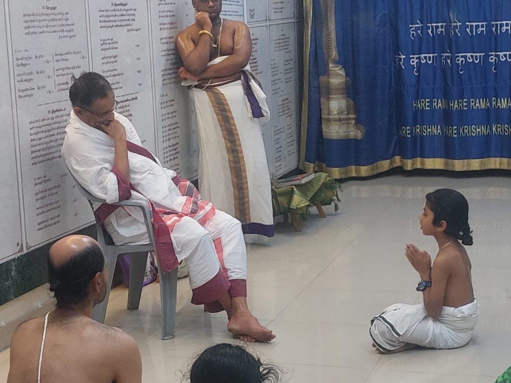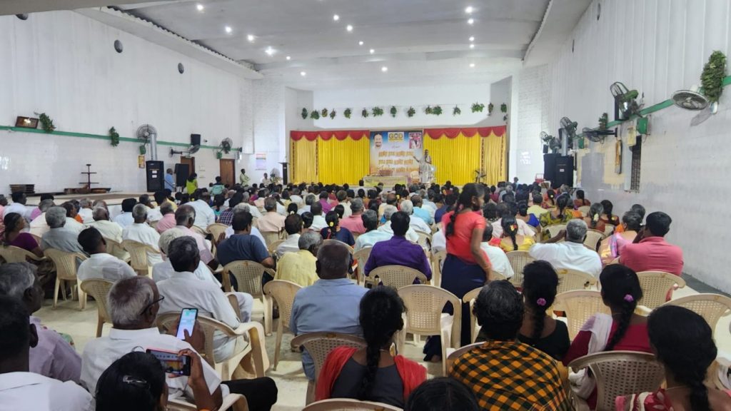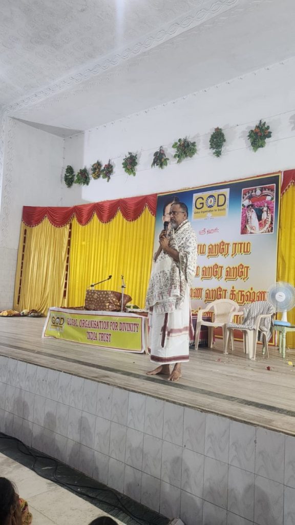 Then, Sri Swamiji visited Keerthanavali mandapam at Kanchipuram and arrived to Mass prayer venue at Vandavasi at 6 pm and conducted a Mass prayer with 700 plus devotees at Vandavasi stressing on importance of prayers and Chanting Mahamantra.