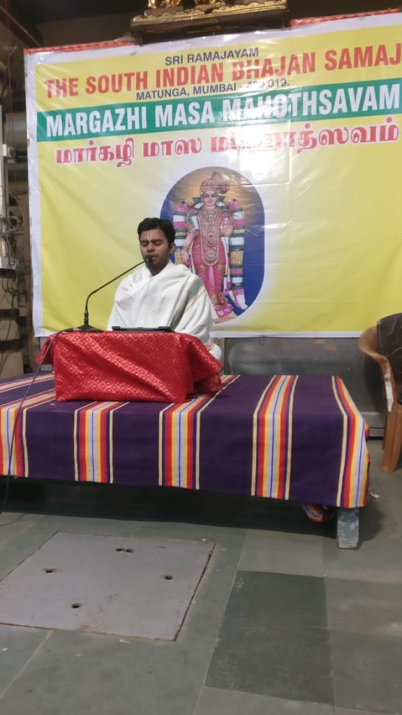 Sri Srivaths discoursed on Sri Aandal’s Thiruppavai between December 16th – December 30th 2022 at Matunga Bhajan Samaj, Mumbai. Around 50 devotees joined on all days.