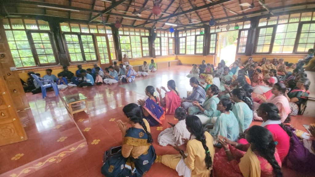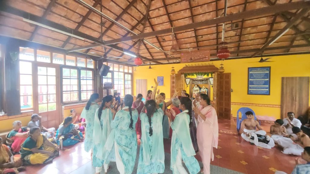 Radhe Radhe. Pranams and Prostrations to Guruji Maharaj’s Holy Feet. ‘Sanctity-Strewn’ Senganur Namadwaar is the Blissful Home of our Venerable Sri Sri Krishna Premi Anna and Sri Madhuram Manni, who are bestowing their Blessings on all the Devotees, Perpetually! Akhandanama on Rohini Tirunakshathiram Day, is a Satsang that is punctiliously framed and meticulously rendered, more so when our unversed minds traverse in tricky territories! Through these pivotal Satsangs Guruji Maharaj anchors our lives, with flair and flourish, serves as ‘Guardrails’ setting our shifty thoughts straight! The Beauty and Precision with which Mahamantra was chanted, layered by Undiminished Zest and Zeal, by 60 devotees hailing from Sriperumbudur, Malaipattu and Maharanyam Namadwaars, soothes our hearts, with Inexplicable Joy and Ecstasy. Grateful to Revered Guruji!!