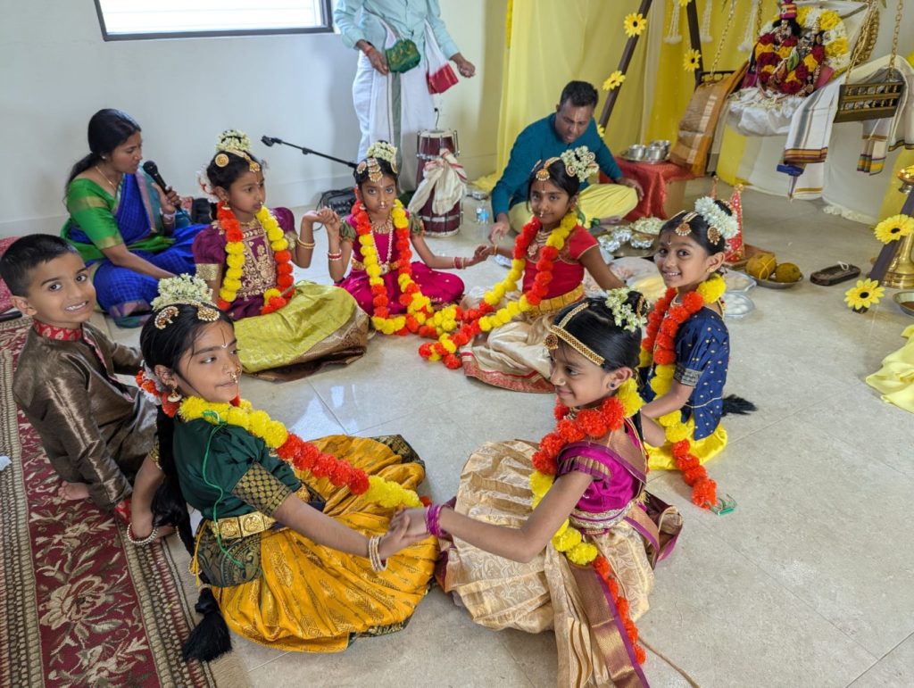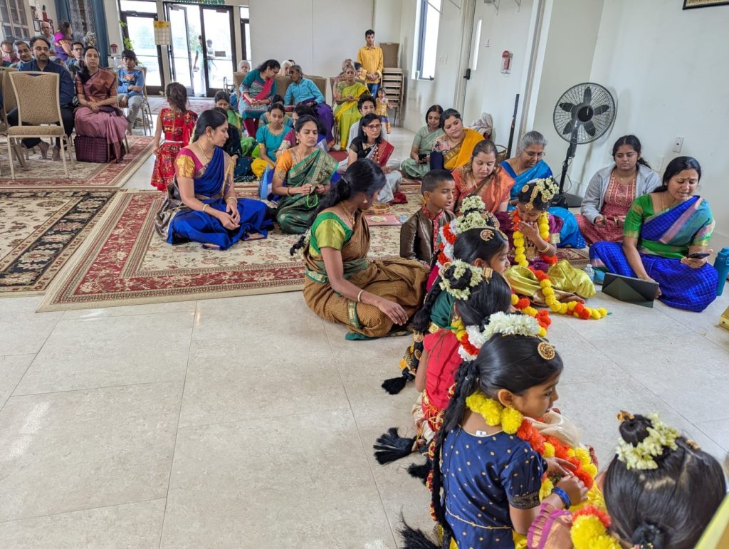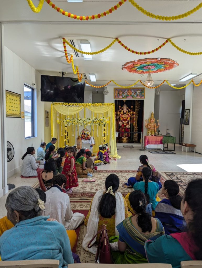 Andal Kalyanam started with singing of sampradaya bhajans and Divyanama Sankirtanam,culminating with Mangalya Dharanam and Harathi. Lunch prasadam was provided to all devotees. About 80 people attended the event.