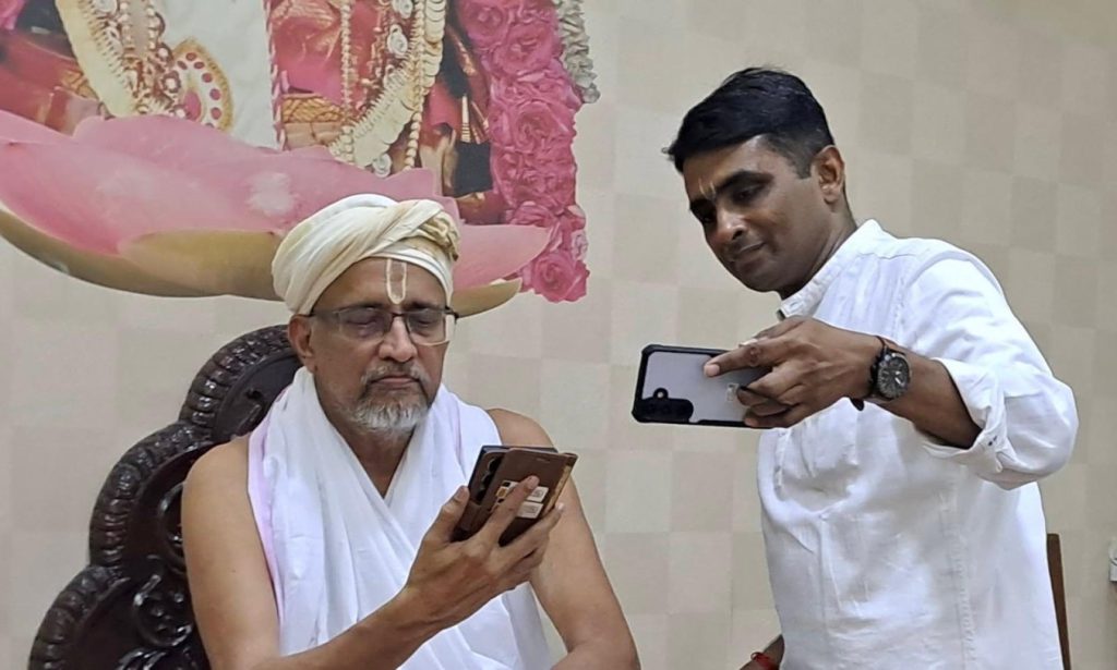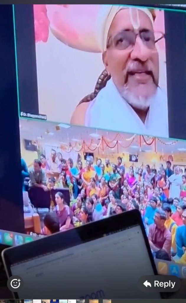 Sri Swamiji first gave a wonderful blessing message emphasizing the power and value of the Divine Name and expressed his joy at the opening of this new Namadwaar. As devotees chanted the Mahamantrra joyfully, Sri Swamiji watched over camera and remotely opened the curtain of the nameplate, signifying the official opening of the Namadwaar.