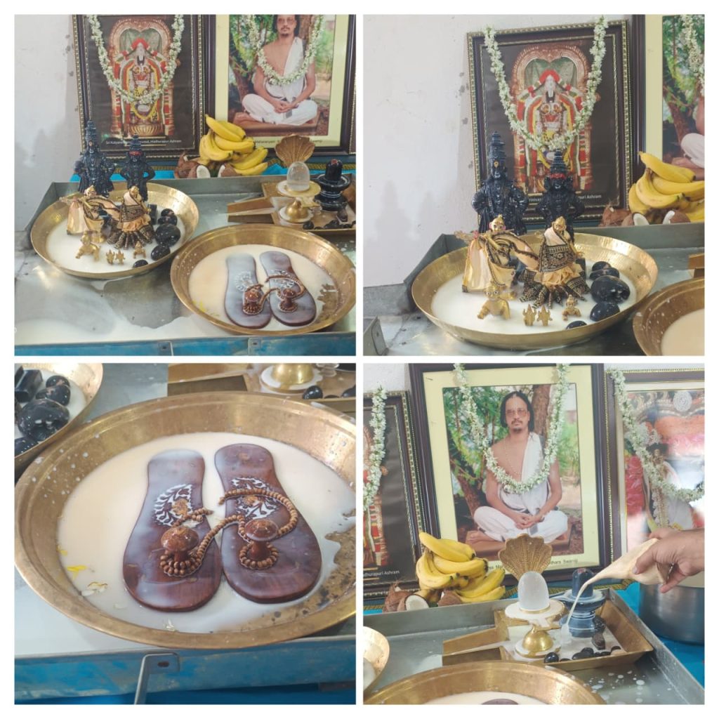 As ordained, On the eve of Sri Swamiji’s Thirunakshtram, Maharudram chanting & Homam & Sri Swamiji’s Paduka Abhishekam were organized from 14 October 2025 to 17th October 2025 at Premika Vedashram Hyderabad under the aegis of Sri Sandeepani Gurukula Seva Trust. 28 Veda Pandits who had graduated from Sri Swamiji’s Vedapatasalas attended and chanted Maharudram. For 4 days, Patasala precincts were reverberating with Rudram hymns. Devotees who attended the program felt blessed.