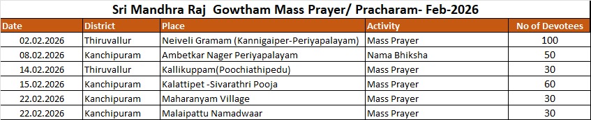 Mass Prayers by Sri Mandhra Raj Gowtham in February 2026   Read more