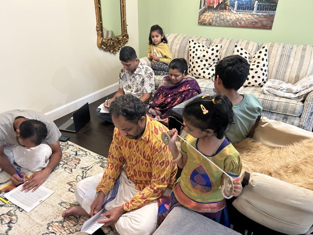 The Grand Navarathri Utsav was celebrated with high spirit with nama reveberating in many homes across many nama kendras in Ontario hosting Nama Bhiksha satsangs. Devotees immersed themselves in the soulful rendition of Nama Kirtan, Kirtans on Devi culminating with the blissful Mahamantra Anthem. 30 families hosted & over 300 participated in the Nama Bhiksha satsang over the 11days.