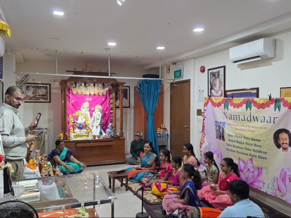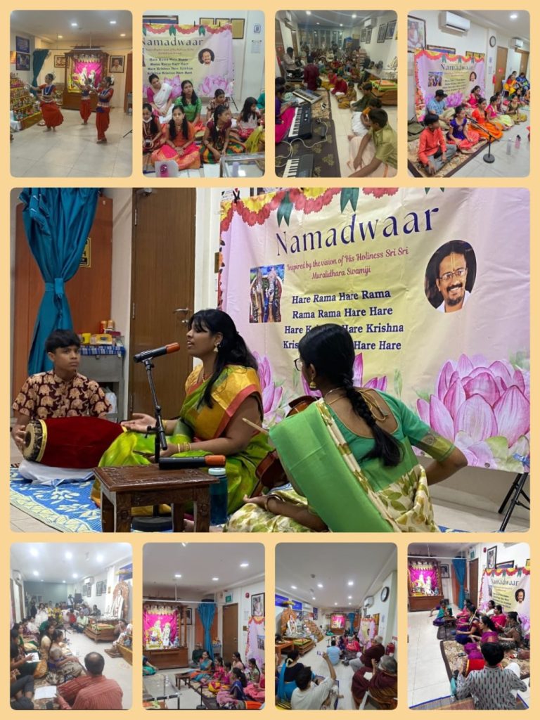 Sharada Navarathri utsavam was celebrated at Singapore Namadwaar centre in 2025, with the blessings and guidance of our Guruji, His Holiness Maharanyam Sri Sri Muralidhara Swamiji, and in the auspicious presence of our beloved deities, Sri Madhurisakhi samedha Sri Premika Varadhan. The entire program was guided by Brahmasri Janardhananji and conducted with enthusiastic devotion by all members and participants.