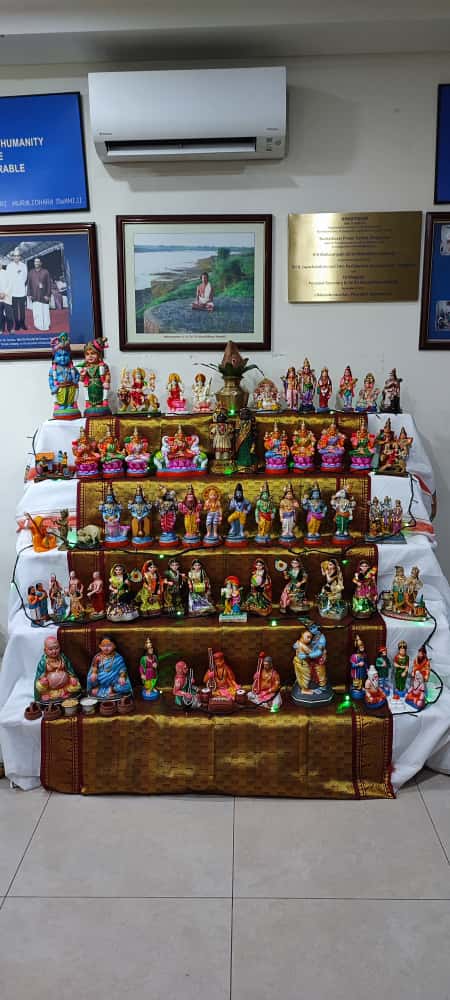 About 300 guests have visited Namadwaar over the 10 days in the evenings to witness the golu and artistic offerings. Evening programs started with the singing of Mahamantra together, followed by general introductions, and ended with the daily Dolotsavam ceremony. The participants and guests were each offered a small token of appreciation, comprising auspicious Kumkum prasadham, sweets, sundal, fruits, and additionally shawls for performers.