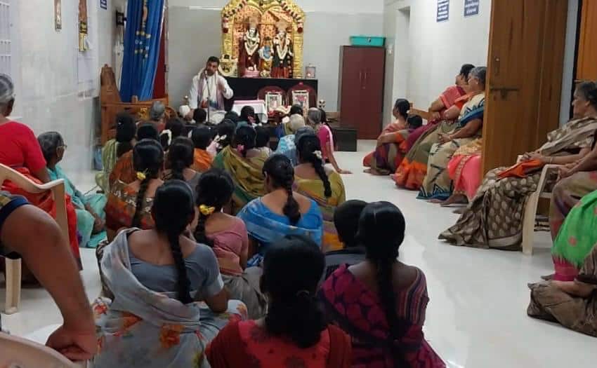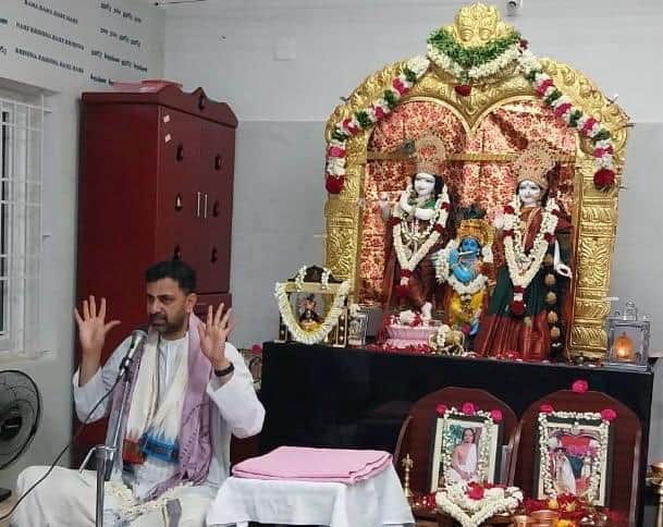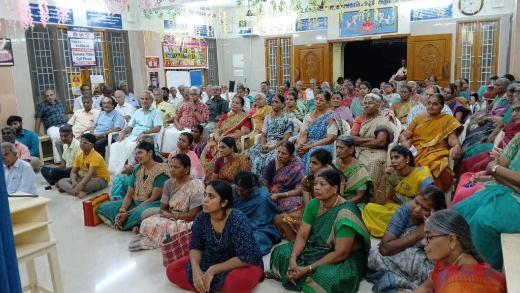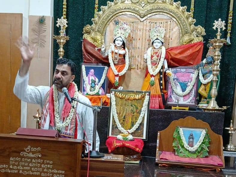 Radhe Radhe. Humble Pranams and Prostrations to Guruji Maharaj’s Holy Feet. Irrefutably, Satsangs that blossom under Guruji Maharaj’s Divine Ordain shapes our spiritual ethos and when we are, more often than not, caught in “missed out on silverware situation”, Guruji Maharaj’s Grace pitches in veritably and ensures our “podium finish” in life’s journey! Sri Ramanujamji’s Splendid Discourses at Udumalpet, Dharapuram on the Propitious Occasion of Sri Rama Navami, witnessed assembling of several dozen devotees, listening to his Utterances keenly! Grateful to Guruji Maharaj for heralding these Magnificent Satsangs that have the magical prowess to sift our thoughts distinctly, delineating impeccably, the appropriate actions that we have to undertake unequivocally, so that our paths are ridden with Nama [Mahamantra] roses verily!