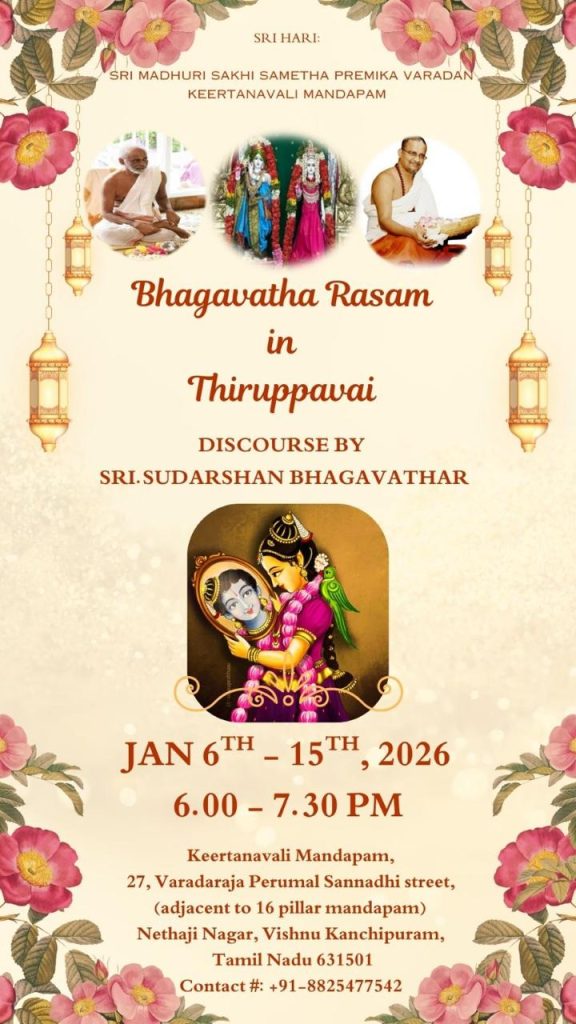 Singapore Namadwaar was invited by Sri Perumal Temple to host a lecture series by Brahmasri Janardhanan Ji on Andal Vaibhavam from December 11th, 2025, to December 13th, 2025. Over the three days, Brahmasri Janardhanan Ji took the audience through the advent of the twelve Alwars on the first day, the significance of Bhakti and Sri Read more