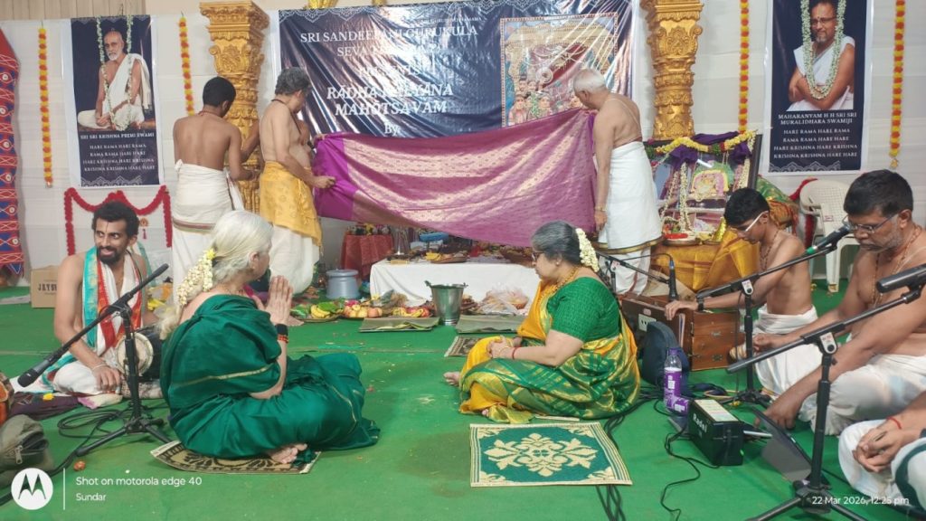 Following this, Sri Radha Madhava Kalyana Mahotsav was celebrated with great devotion and grandeur on March 21 and 22. The event was led by Sri Aswin Bhagavatar and his team. Approximately 190 devotees participated in the Kalyana Mahotsav.
