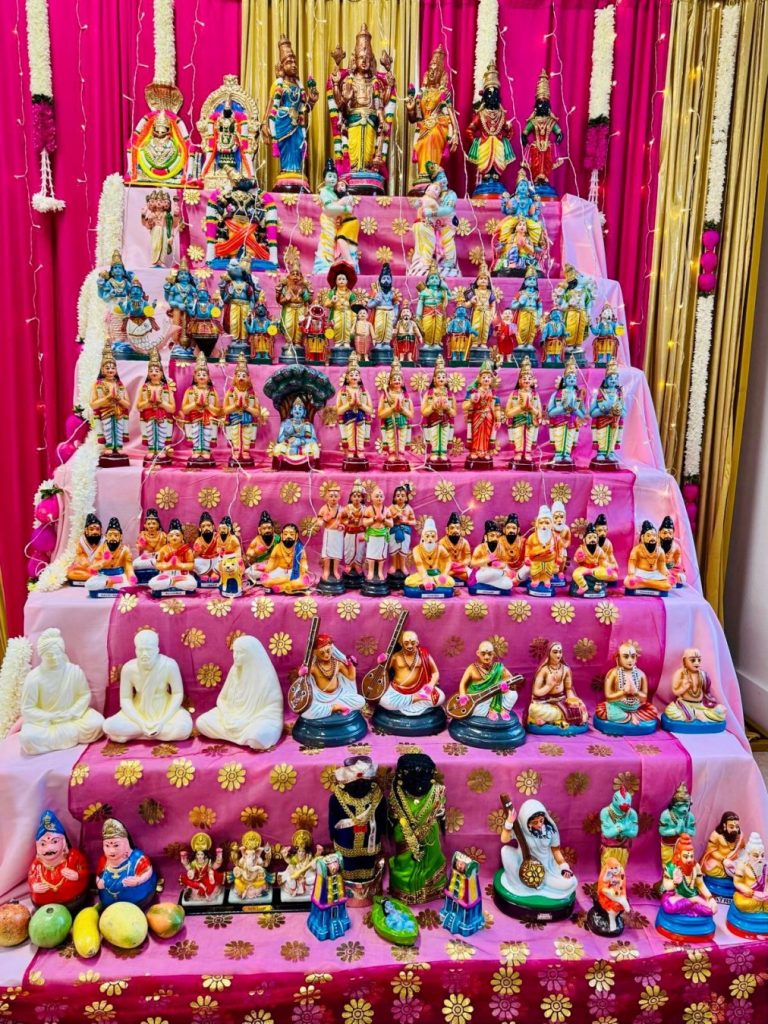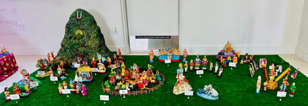 By the grace of Sri Aishwarya Srinivasa Perumal, a divine Navaratri Utsavam was celebrated at the temple. A themed golu was set up for the viewing pleasure of devotees. The golu included a rich display of deities, saints, leelas from Srimad Bhagavatam and depiction of Bhagavan’s avataras.