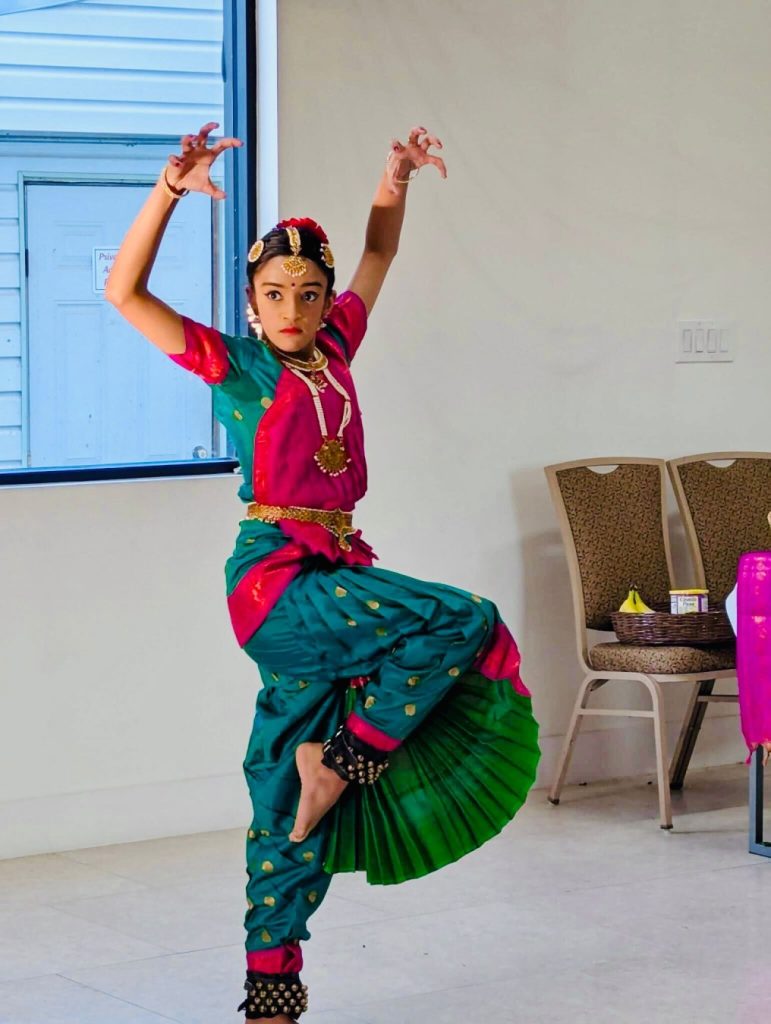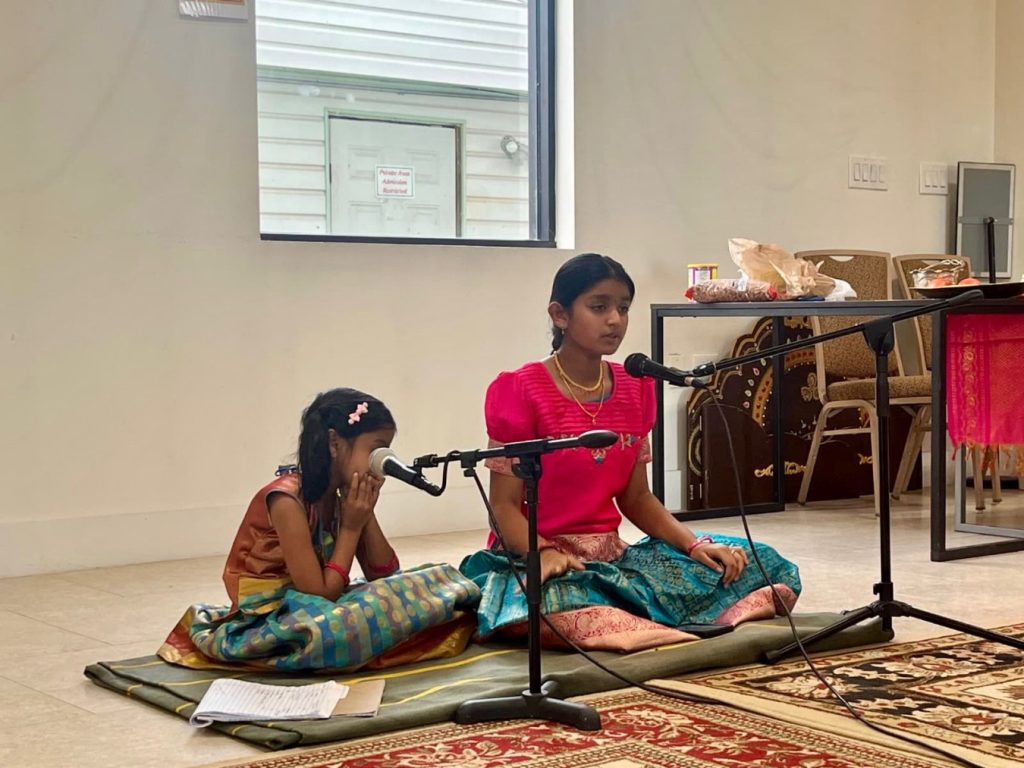 On October 1, Saraswati puja was celebrated at the temple where students of all ages got the opportunity to bring 1 or 2 books as a symbol of offering of their learning to Bhagavan and get blessed on this auspicious day. Archana for Saraswati Devi was performed and everyone present chanted slokas and prayed to Saraswati Devi.