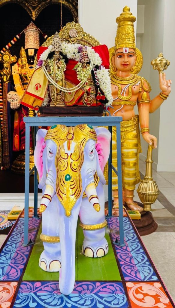The Utsav also included special programs such as Purataasi Saturday Thinai Deepam darshan and darshan of Premika Varadan and Madhuri Sakhi on the new vahanas (Sesha, Garuda, Yaanai and Kudhirai). About 300 people attended the event over the 9 days of the utsav.