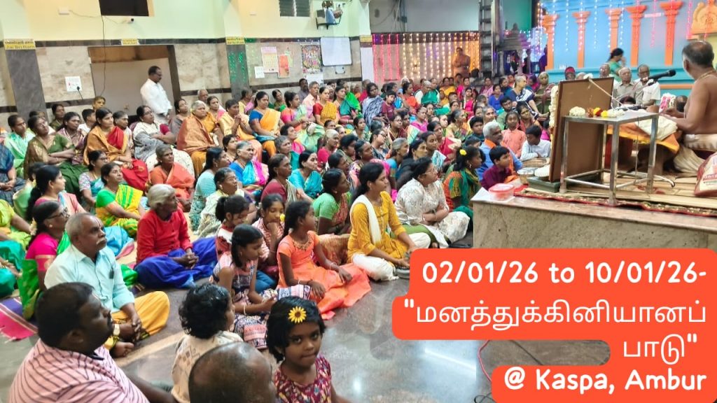 1. 02/01/2026 to 10/01/2026- “மனத்துக்கினியானைப் பாடு”, A Ramayana Satsang series at Sri Ramar Temple, Kaspa, Ambur.