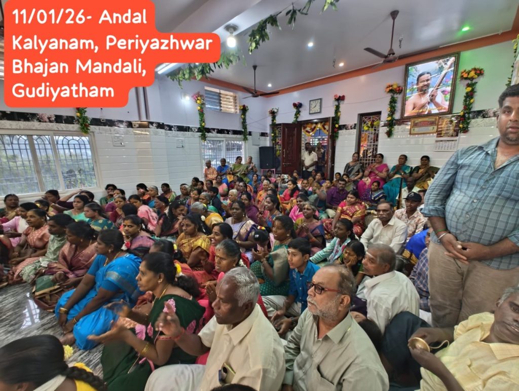 12. 11/10/2026- Conducted “Sri Andal Kalyanam” on koodaravalli at Sri Periyazhwar Bhajan Mandali, a kendra of Gudiyatham Namadwaar.