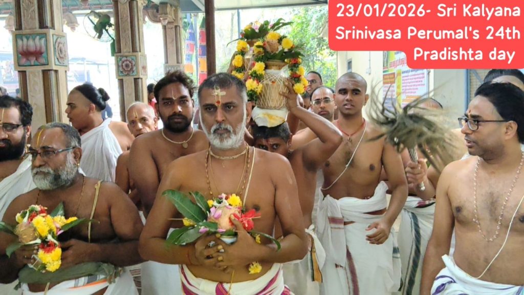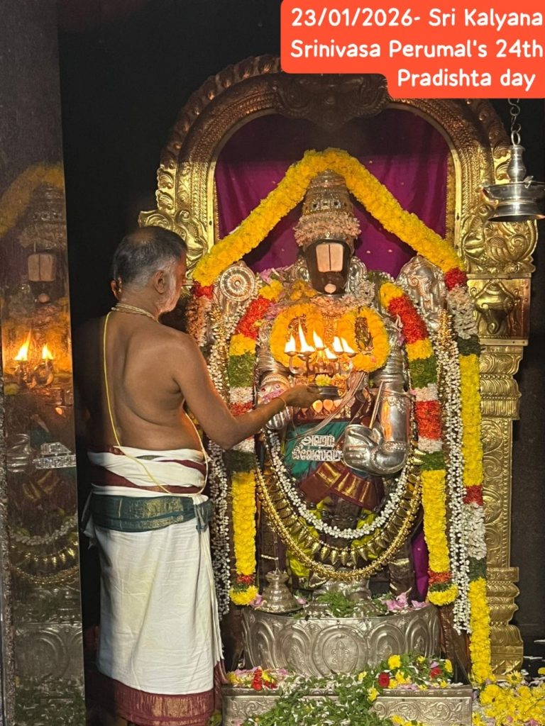 3. 23/01/2026- On account of Sri Kalyana Srinivasa Perumal’s 24th Pradishta day, performed Special Thirumanjanam and Pooja to Sri Kalyana Srinivasa Perumal.