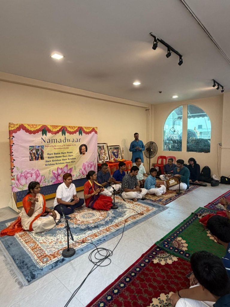 The SG 60 Nama Relay was an event organized by Namadwaar Singapore on 4th April 2026, to commemorate the glorious 60th anniversary of Singapore’s independence by chanting the Mahamantra for peace and harmony. It was conducted as a relay, with various organizations taking turns to chant the Mahamantra for 20 minutes each. The event was held at the Ground Floor Hall of Sri Sivan Temple, Geylang East.