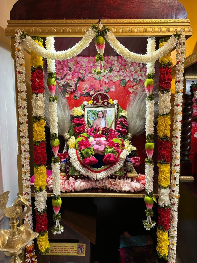 On Aippasi Swathi (October 22nd), devotees offered the Swathi Nakshatra Srimad Bhagavata Parayana Poorthi, which is performed every month throughout the year. The celebrations continued with Guru Kirtans and Akhanda Mahamantra Poorthi offered at the Lotus Feet of Sri Swamiji, followed by Guru Vandanam and Pushpa Varsham to Sri Swamiji.