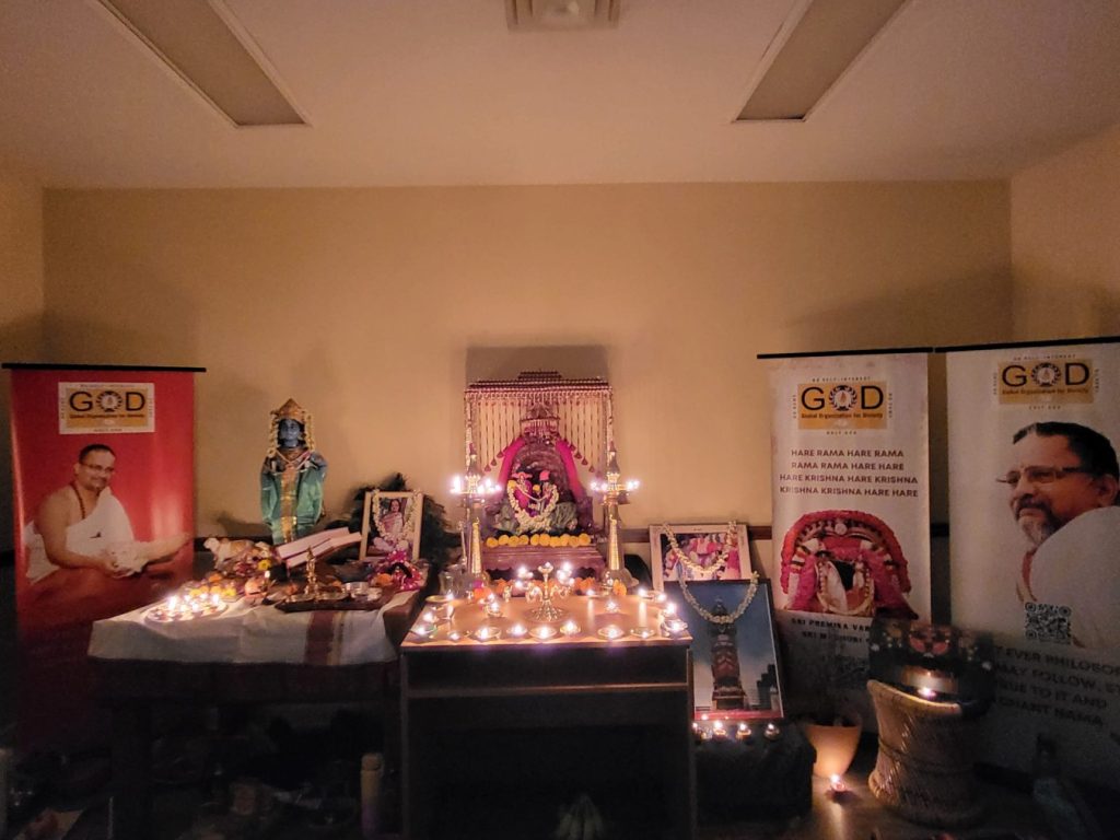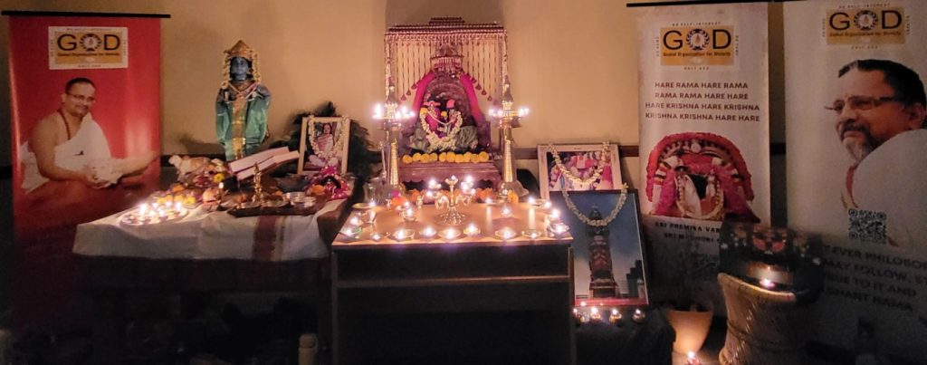 With boundless grace of our Gurumaharaj and causeless mercy of the divine couple Madhuri Sakhi Sametha Sri Premika Varadha Thakhurji, GOD Satsang Toronto, Ontario celebrated Thirukaarthigai and Vishnu Deepam at Namadwaar Ontario on 6th December by the lighting of Deepams, singing Madhurageetham. We humbly offer our prayers to celebrate them more and more and many Utsavams in the near future at the Lotus feet of our beloved GuruMaharaj.