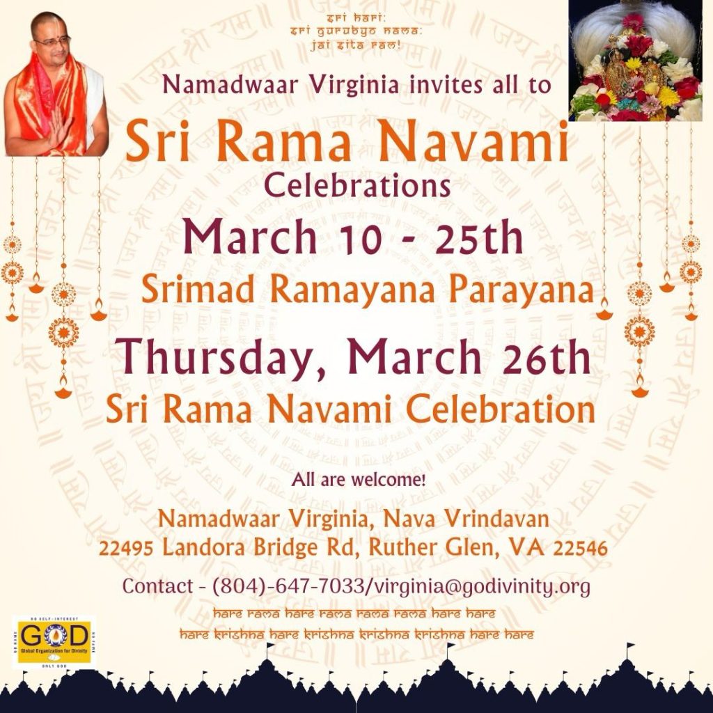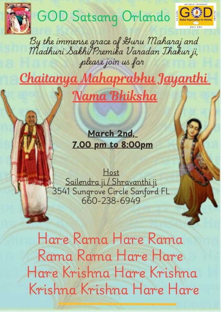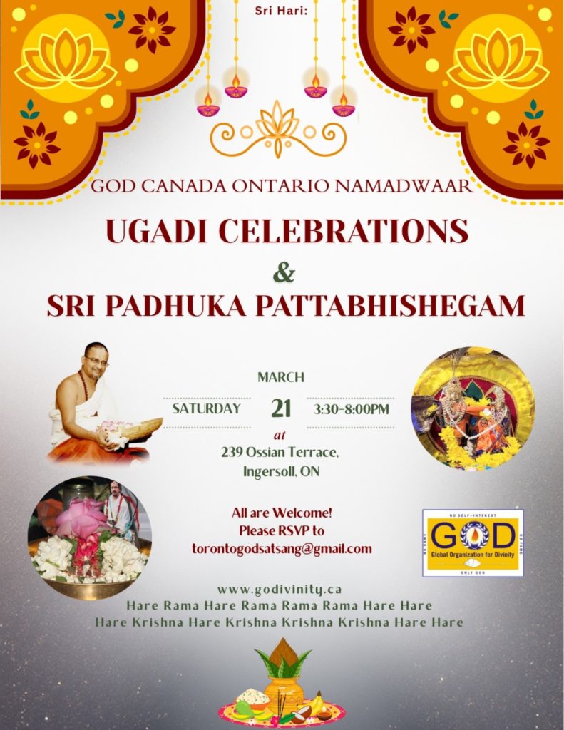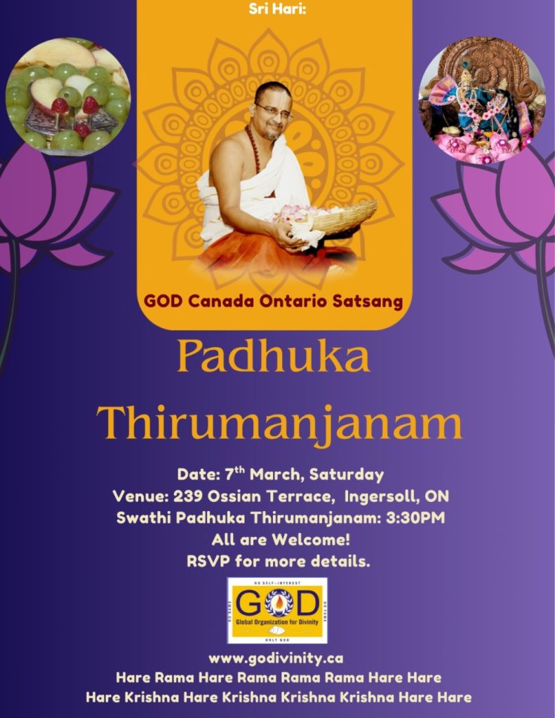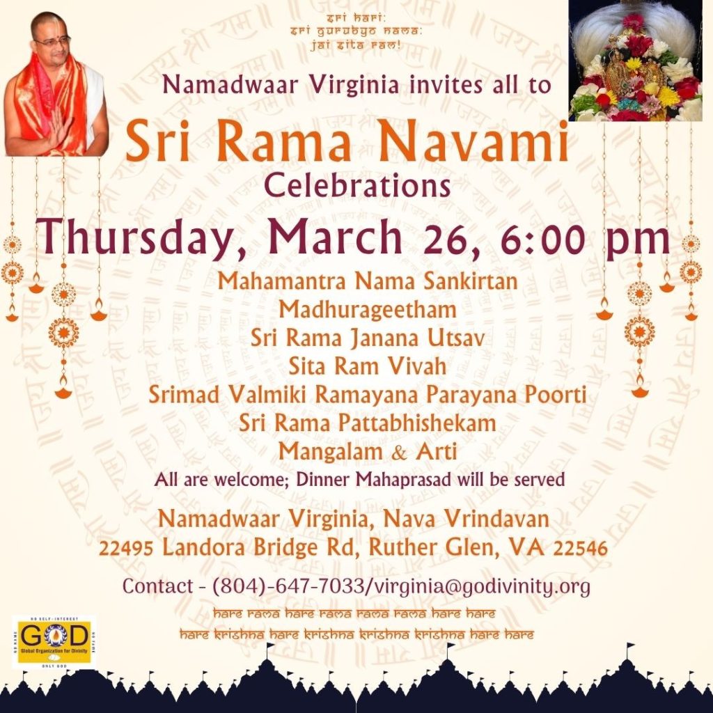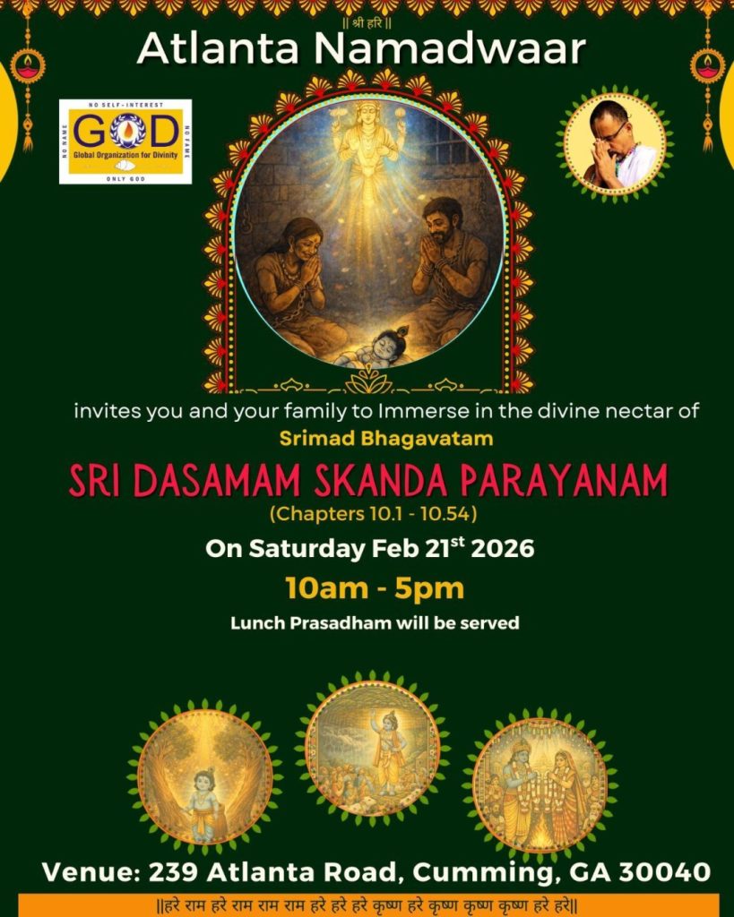 Radhe Radhe. Koti Namaskarams and Pranams to Guruji Maharaj’s Renaissance-Supreme Holy Feet that brings about Metamorphosis in the Cosmos, in entirety! Guruji Maharaj, an ‘Embodiment of Peace’, is that Divine Architect who has produced an Enchantingly Enduring Legacy that remains Etched Eternally, in our memory! The Lustrous Gems of Events, strung under the Caption, “Upcoming Satsangs in USA / Canada”, is mind-blowing, mildly stated! Excepting Guruji Maharaj’s Incalculable Grace, it is next to impossible to chart those Overwhelming Satsangs and we are definitely bewildered and dazed as to how such Sublime and Superior Programs can first of all be conceived, leave alone achieving Immaculate Execution! Even the Captions have the Efficacy to propel our thoughts to that ‘Bliss-encompassed’ levels! Flipping through the chronicle of events itself is a magical source of Joyousness that speaks eloquently about Guruji Maharaj’s Abiding Passion in elevating us to that Inconceivably Aggrandized Spiritual Levels, persistently! For context, each and every Invite is Rich in Design, Guruji Maharaj’s Divine Photographs [with different delectable postures] adorning them are Classy & Inspiring, Wordings embossed are out of the world [Gratitude Nama Mahamantra Nama Sankirtan, Radha Madhav Vivah, Gambhira Srinivasa, KrishnAji kA KhELA, Madhura Utsav, Narasimha Jayanti – Namadwaar Seattle (Sri Prahlad’s cute & humble posture, sitting on the Lap of Majestic Lord Narasimha, embracing Sri Prahlad is magnificent)] – succinctly, the whole enchilada is saccharine-soaked, out of the world, irrefutably! Thanks in tons to our Master Craftsman, Guruji!!