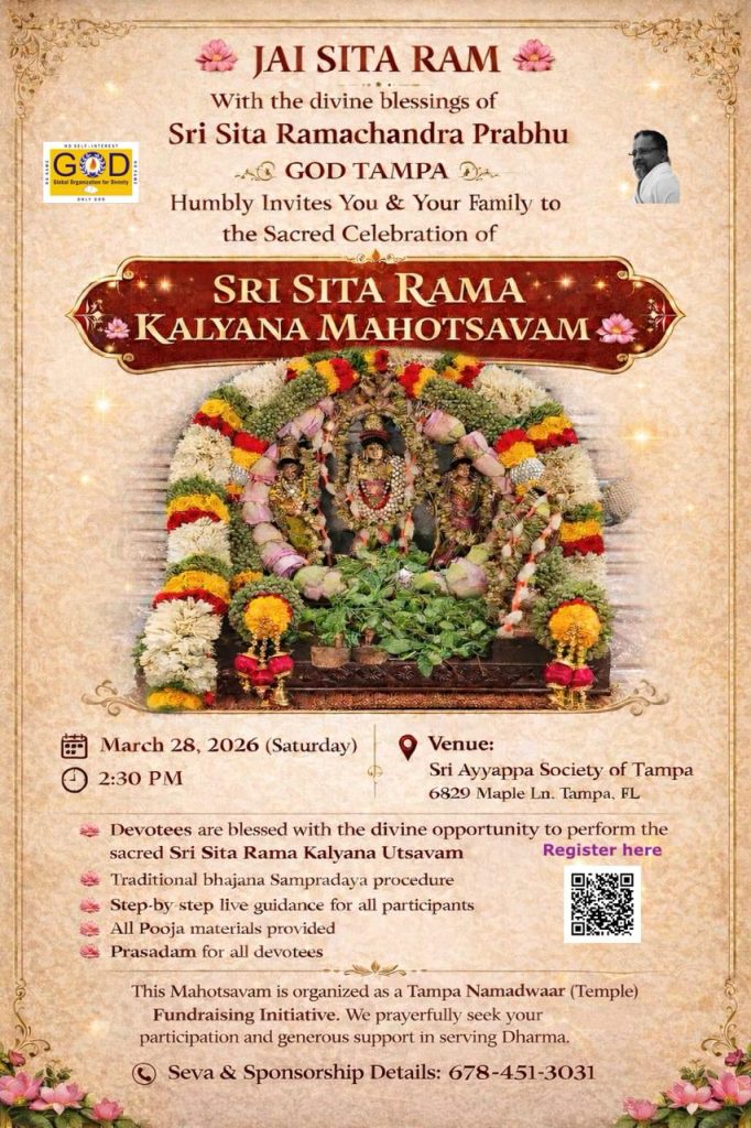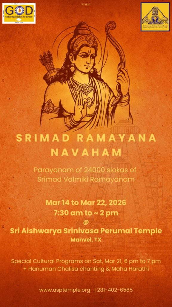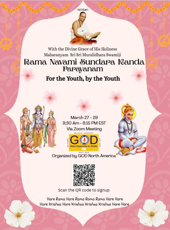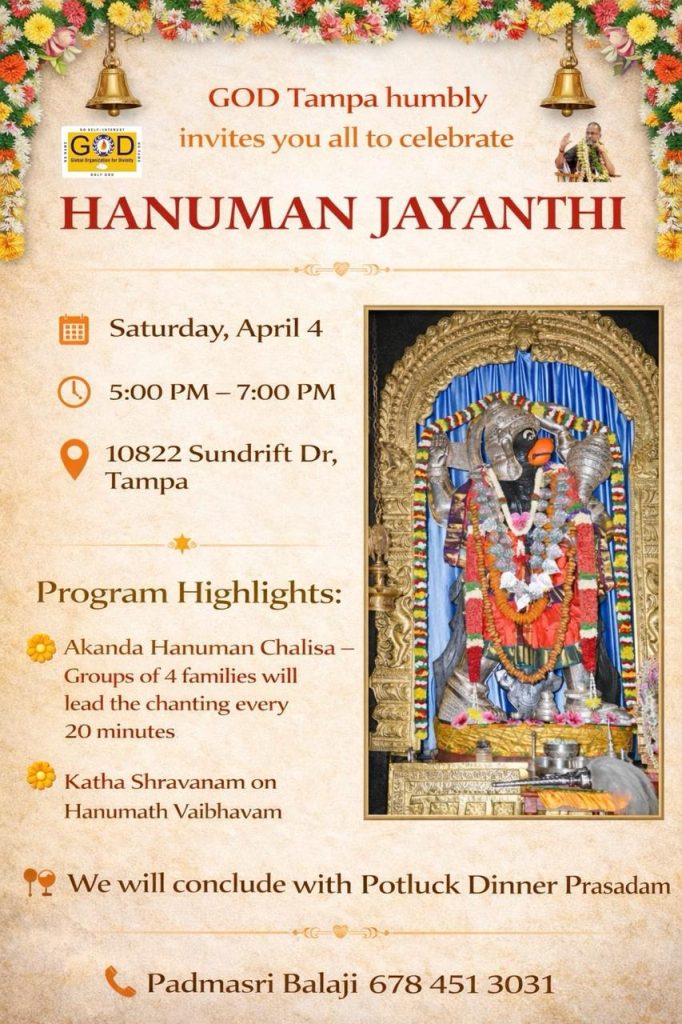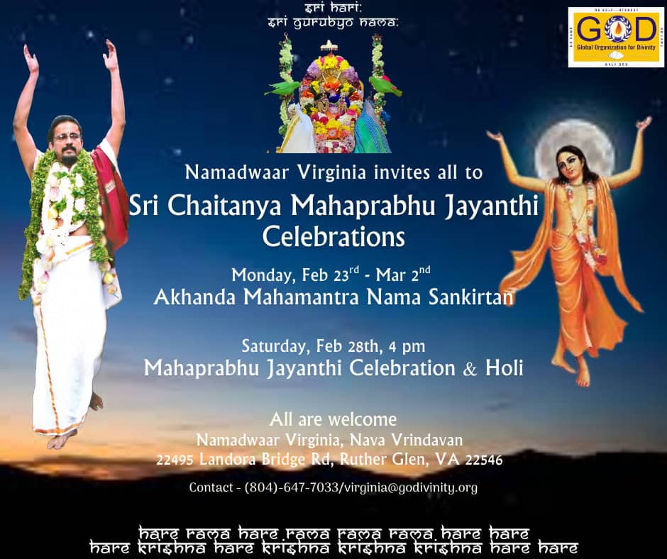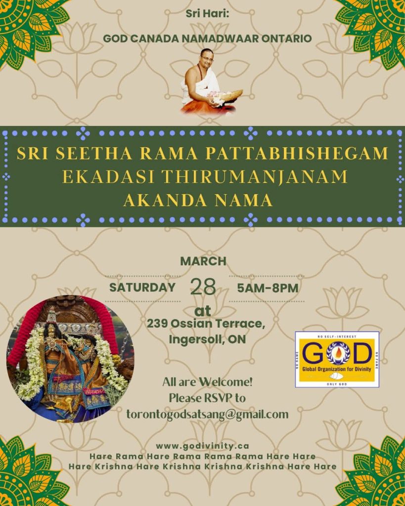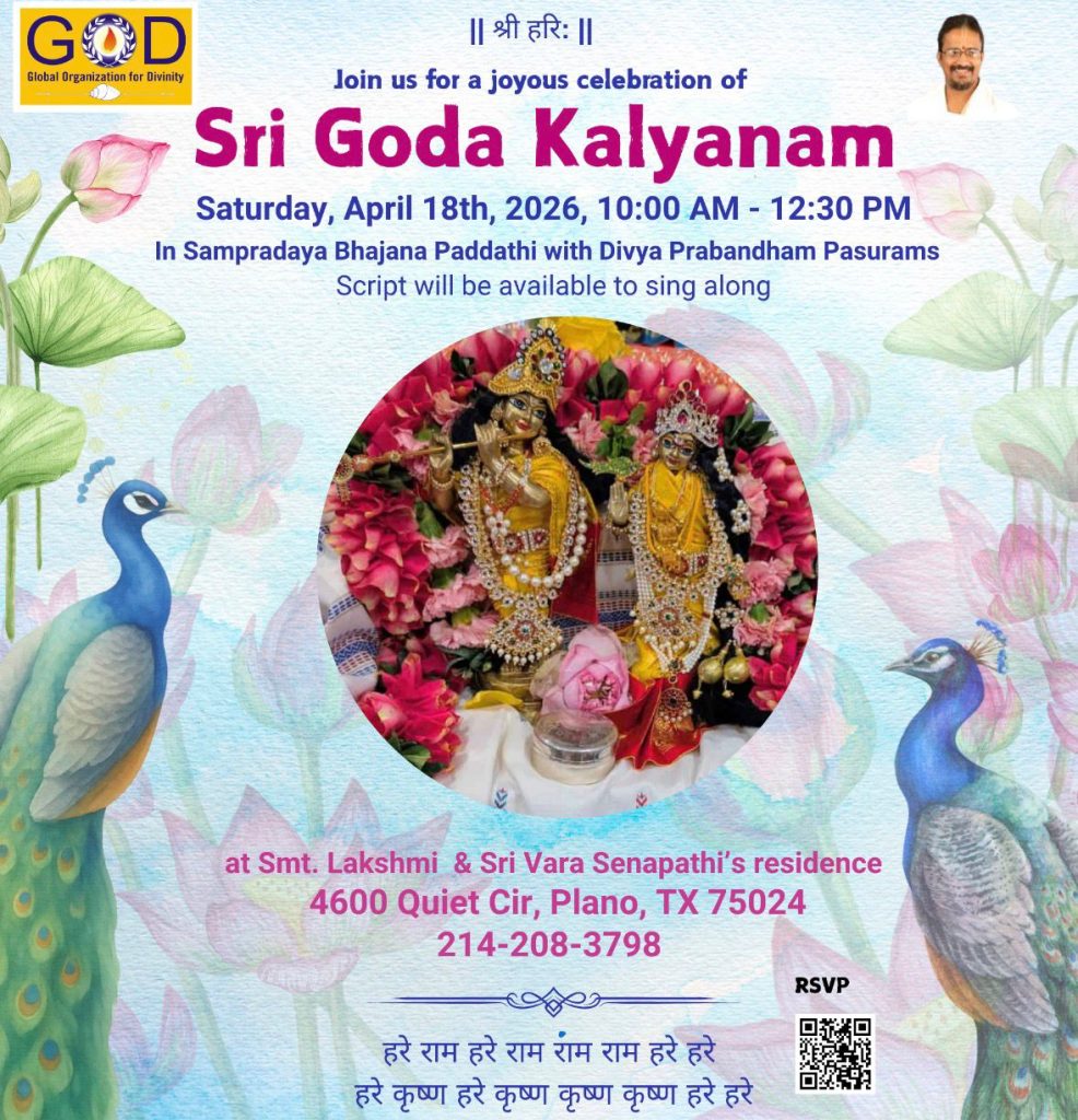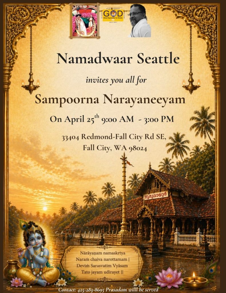 Radhe Radhe. Koti Namaskarams and Pranams to Guruji Maharaj’s Renaissance-Supreme Holy Feet that brings about Metamorphosis in the Cosmos, in entirety! Guruji Maharaj, an ‘Embodiment of Peace’, is that Divine Architect who has produced an Enchantingly Enduring Legacy that remains Etched Eternally, in our memory! The Lustrous Gems of Events, strung under the Caption, “Upcoming Satsangs in USA / Canada”, is mind-blowing, mildly stated! Excepting Guruji Maharaj’s Incalculable Grace, it is next to impossible to chart those Overwhelming Satsangs and we are definitely bewildered and dazed as to how such Sublime and Superior Programs can first of all be conceived, leave alone achieving Immaculate Execution! Even the Captions have the Efficacy to propel our thoughts to that ‘Bliss-encompassed’ levels! Flipping through the chronicle of events itself is a magical source of Joyousness that speaks eloquently about Guruji Maharaj’s Abiding Passion in elevating us to that Inconceivably Aggrandized Spiritual Levels, persistently! For context, each and every Invite is Rich in Design, Guruji Maharaj’s Divine Photographs [with different delectable postures] adorning them are Classy & Inspiring, Wordings embossed are out of the world [Gratitude Nama Mahamantra Nama Sankirtan, Radha Madhav Vivah, Gambhira Srinivasa, KrishnAji kA KhELA, Madhura Utsav, Narasimha Jayanti – Namadwaar Seattle (Sri Prahlad’s cute & humble posture, sitting on the Lap of Majestic Lord Narasimha, embracing Sri Prahlad is magnificent)] – succinctly, the whole enchilada is saccharine-soaked, out of the world, irrefutably! Thanks in tons to our Master Craftsman, Guruji!!
