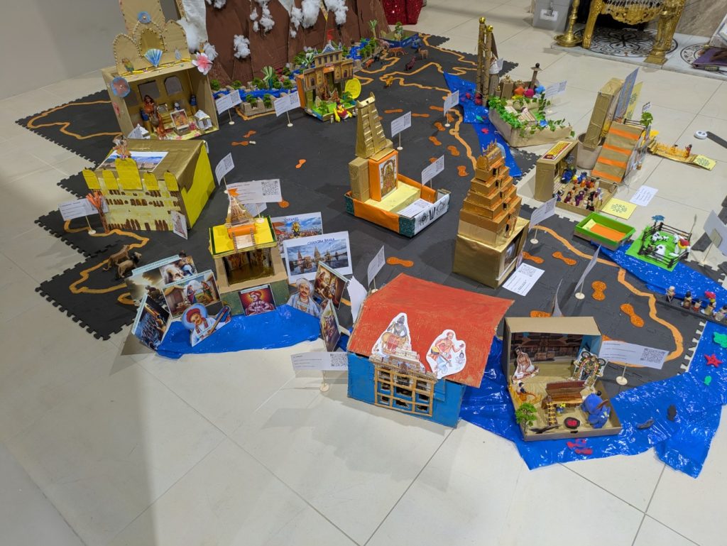 Kids presentation: Children displayed their dioramas and presented the stories of each temple and saint to visitors, bringing the exhibits to life.