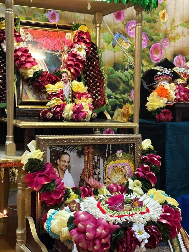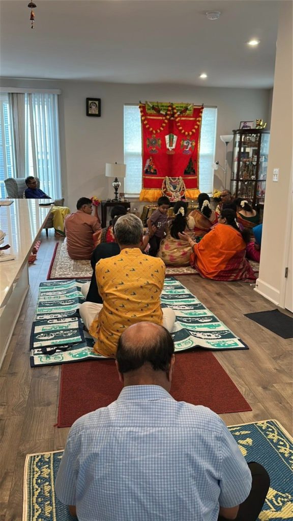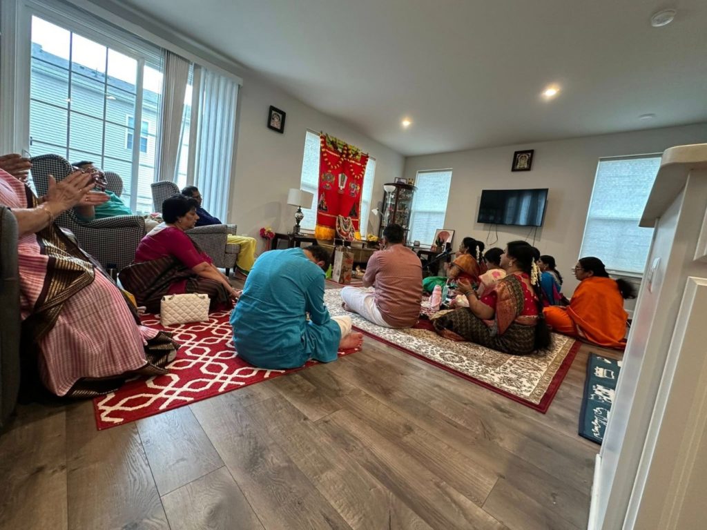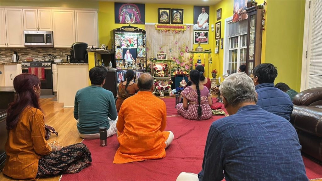 At Sri Rohitji’s residence in Manassas, Virginia, devotees did a Mahamantra Nama Chanting, followed by a pravachan by Sri Muraliji on the meanings of verses from the Mahamantra Kirtans.