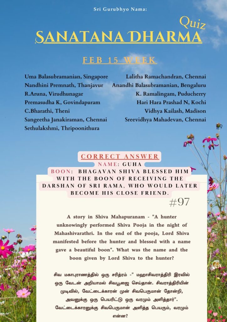 Home » Sanathana Dharma Quiz » Feb 15, 2026 – Correct Answer Feb 15, 2026 – Correct Answer Recent Quiz Results Feb 15, 2026 – Correct Answer Feb 8, 2026 – Correct Answer Feb 1, 2026 – Correct Answer Jan 25, 2026 – Correct Answer Jan 4, 2026 – Correct Answer Dec 28, 2025 – Correct Answer Dec 21, 2025 – Correct Answer Dec 14, 2025 – Correct Answer Dec 7, 2025 – Correct Answer Nov 30, 2025 – Correct Answer