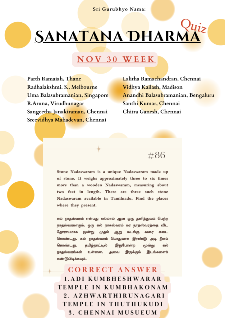 Home » Sanathana Dharma Quiz » Nov 30, 2025 – Correct Answer Nov 30, 2025 – Correct Answer Recent Quiz Results Dec 28, 2025 – Correct Answer Dec 21, 2025 – Correct Answer Dec 14, 2025 – Correct Answer Dec 7, 2025 – Correct Answer Nov 30, 2025 – Correct Answer Nov 23, 2025 – Correct Answer Nov 16, 2025 – Correct Answer Nov 9, 2025 – Correct Answer Nov 2, 2025 – Correct Answer Oct 26, 2025 – Correct Answer